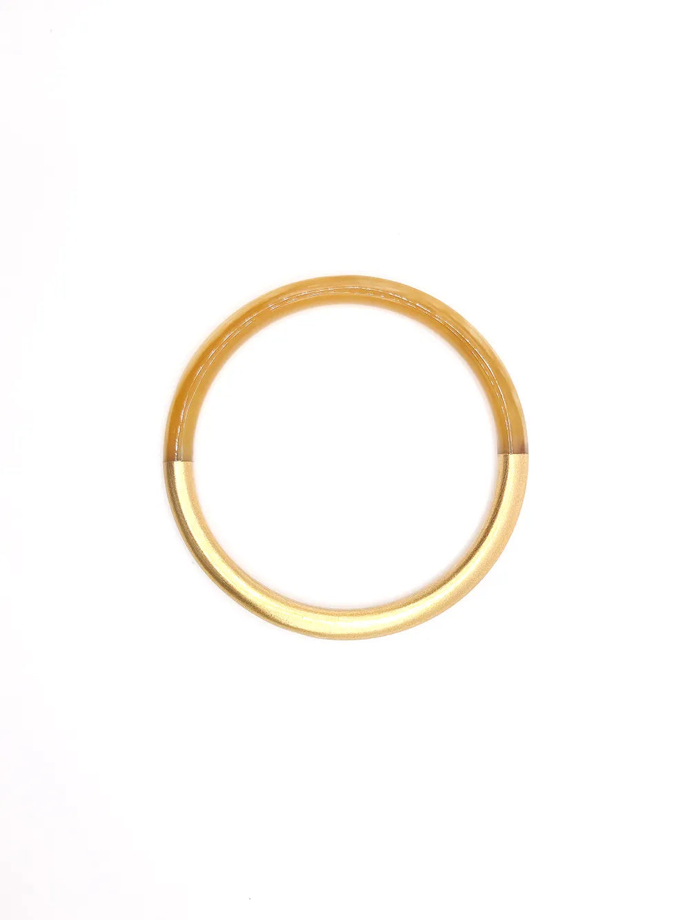 Éclatant et authentique, ce bracelet jonc en corne naturelle séduit par sa forme douce et organique, qui épouse le poignet avec élégance. La matière, vivante et pleine de nuances, se marie à merveille avec la laque dorée appliquée sur une moitié du bracelet. Ce contraste solaire apporte une touche chaleureuse et raffinée, idéale pour compléter un look bohème chic ou rehausser une tenue simple d’une note lumineuse.