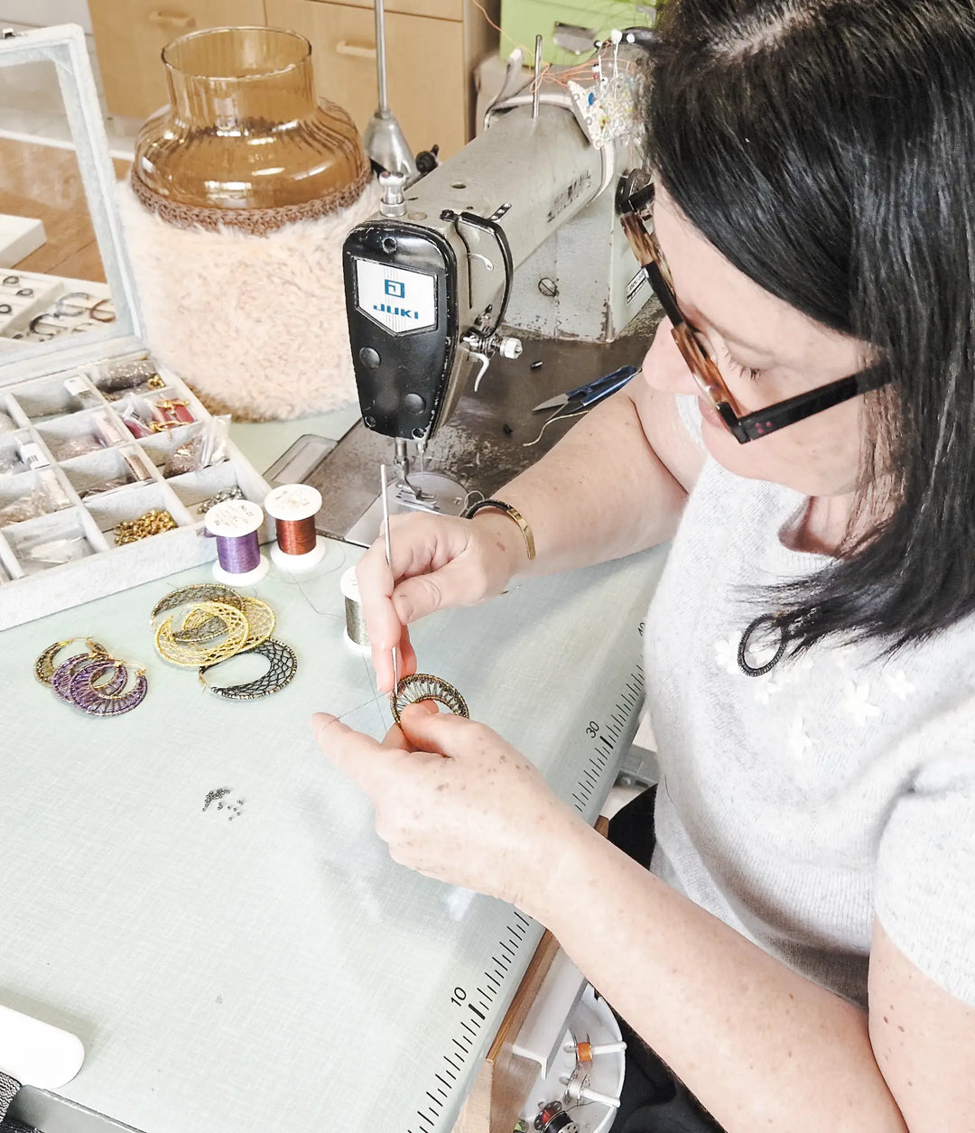 De cette belle complicité naît une collection de bijoux faits main, uniques, brodés, perlés, conçus dans leur atelier en Vendée.